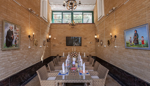 - «Белый» зал рассчитан на 35 посадочных мест. В дизайне используется много золотых элементов, роскошная подвесная люстра, есть камин;
