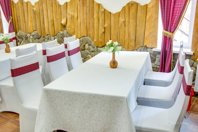 Администрация кафе разрешает также организацию Дней рождения с фруктами и безалкогольными напитками заказчика. По доступной цене оказывается услуга тематического оформления залов. Неподалеку от ресторана находится живописное озеро.